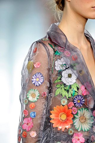 In a season full of flower power, Christopher Kane’s playful alternative featuring printed cut-out collage patches makes for one of the wittiest takes we’ve seen for such a femme motif.