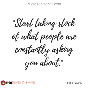 Dorie I always someone to give us a few tips on how you can make your life more amazing this week, you have given so many but if you could narrow it down to three really quick takeaways that someone can do to make their life more amazing this week, to be able to get to the point where they can find themselves more deeply as a recognized expert and reinvent themselves in that genre and what they can do to open up their income streams, what are three really simple takeaways that you think someone can do this week?