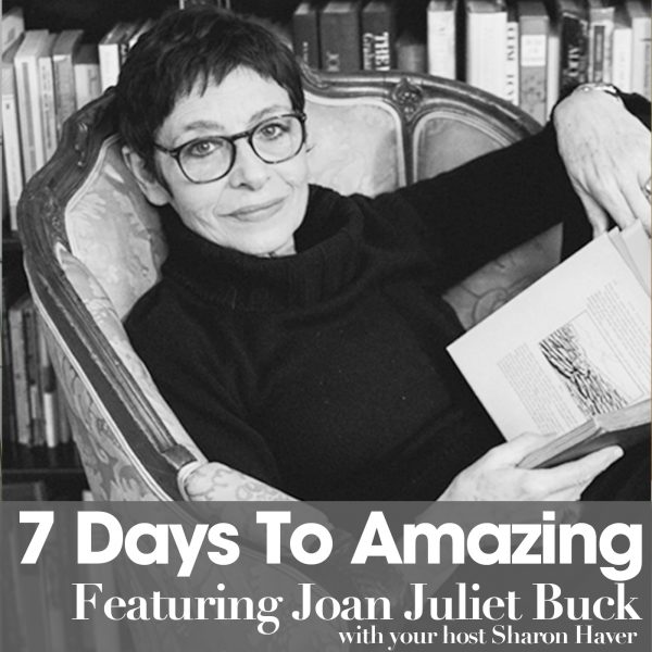 Hello chicsters I am Sharon Haver and you are really about to be amazed today’s episode of the 7 Days to Amazing Podcast features a very special guest Joan Juliet Buck is an American novelist, critic, essayist and editor, she is the only child of a larger than life film producer and was born into a world of make believe.