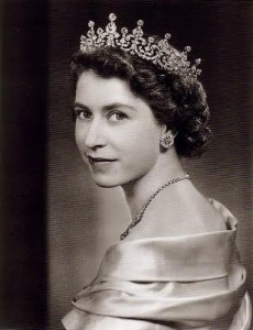 Her VERY 1950’s Mad Men style dress referenced the open portrait shawl collar dresses that Queen Elizabeth wore in the 1950’s. The full-skirt, elbow-length sleeves, and shawl collared styling of Kate Middleton’s Jesire number, a High-Street brand that we aren’t finding online, could be stuffy and downright dowdy if not worn the right way.