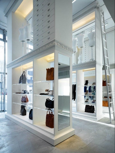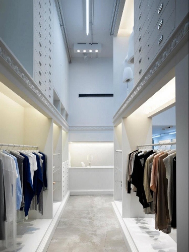 Linear dimensions, stark monochrome fixtures and soothing light lend it a harmonious vibe in-sync with the labels quieter, subtle new direction as of late.
