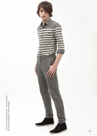 The Opening Ceremony Fall 2010 collection takes inspiration from the style and culture of modern France. Classic Breton sailor stripes, traditional French naval uniforms, European gypsies, 1968 student revolutionaries, and New Wave coolness influence the Fall/Winter first delivery offering. Opening Ceremony imagined an English counterpart to our young Frenchman: a long lost brother born and raised across the channel. In addition to nods toward traditional English style like tweed hunting gear, waxed jackets, and British military uniforms, the collection references a spectrum of Brit youth subcultures including suits in glam rock colors, Mod-inspired parkas for layering over slim jackets and trousers, subtle punk references like pyramid stud buttons, and skinhead fit jeans.
