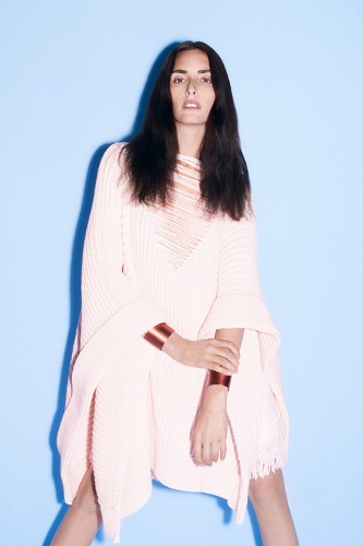 What made the notion of comforting knits all the more covetable here was a certain sense of discipline as each look was on par with the seasons return to minimalism while boasting a cool, unexpected edge. That edge shone through in knits that were sublimely simple with shredded techniques to update the labels often intricate way with knits.