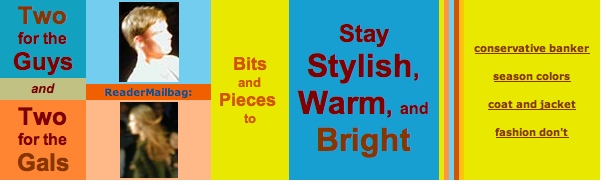 Two for the Guys and Two for the Gals READER MAILBAG… bits and pieces to stay stylish, warm, and bright
